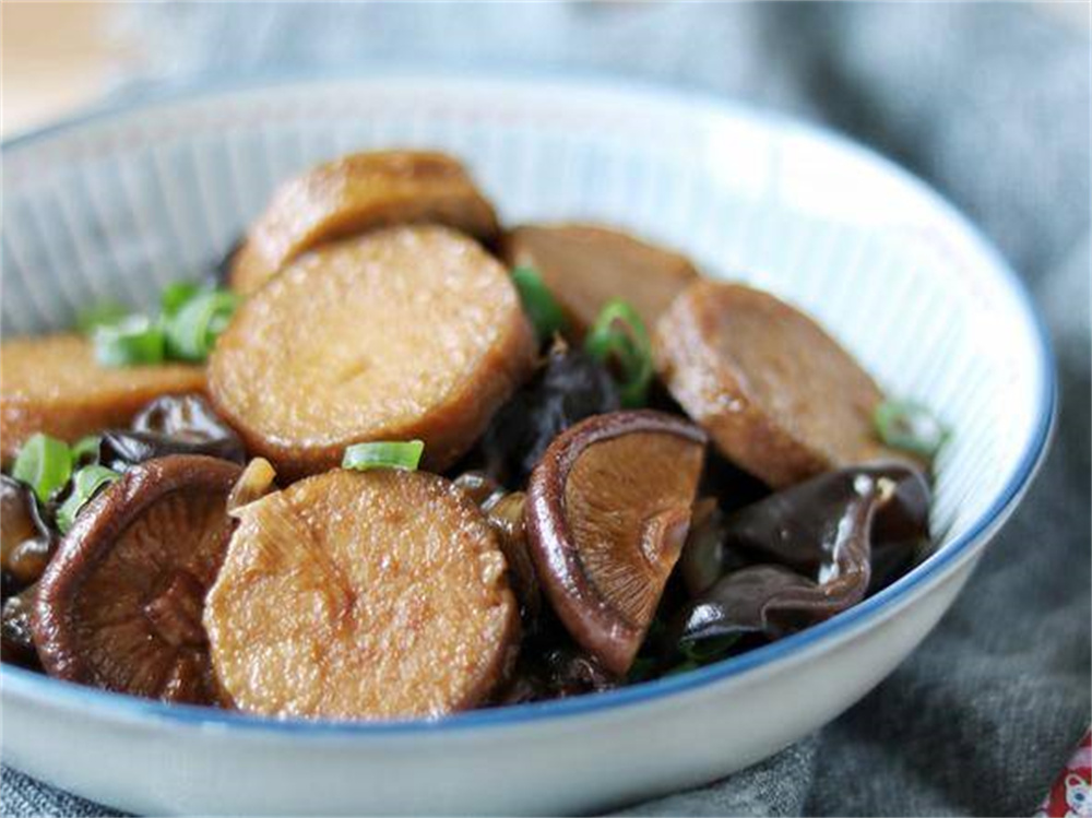 制作:1.锅内放入适量的油,将素鸡放入锅中煎一下,双面煎至微黄后加入香菇进去翻炒。