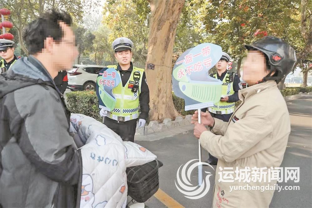 当天,民辅警根据电动自行车骑乘人员出行特点,在市区主要路口、路段开展不佩戴头盔违法查处,采取交通劝导体验、持牌接力劝导、观看警示教育片“三选一”方式,加强警示安全宣传教育。