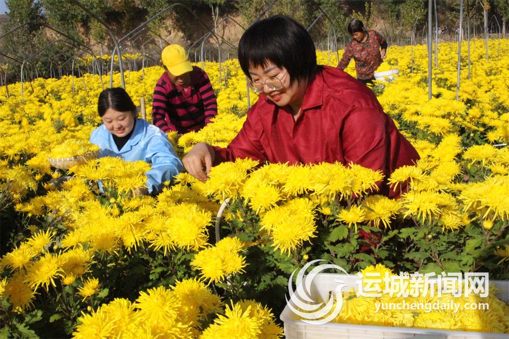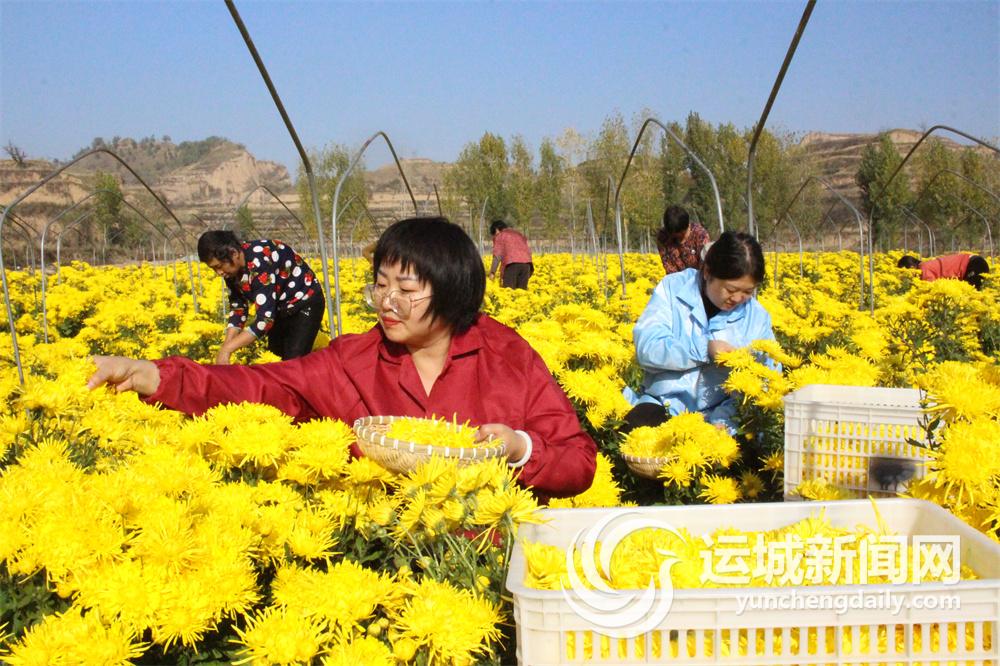 10月30日,在位于闻喜县桐城镇上白土村的山西新桐农业开发有限公司健康菊花园里,农民们在采摘金丝皇菊。