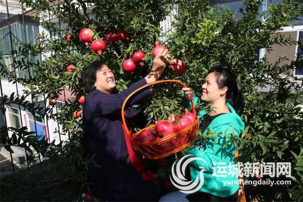 图为阎美英(左)和儿媳王珍正在喜摘红石榴。 杨志龙 摄
