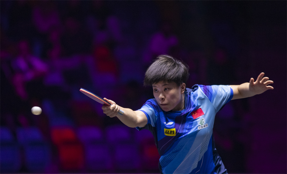 10月31日,王艺迪在比赛中回球。 新华社记者 张帆 摄