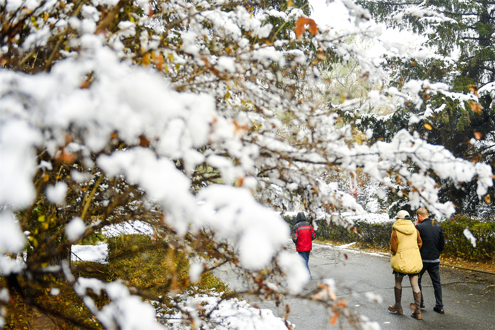 11月1日,市民行走在长春市街头。当日,吉林省长春市迎来今年秋冬季的首场降雪。 新华社记者 许畅 摄