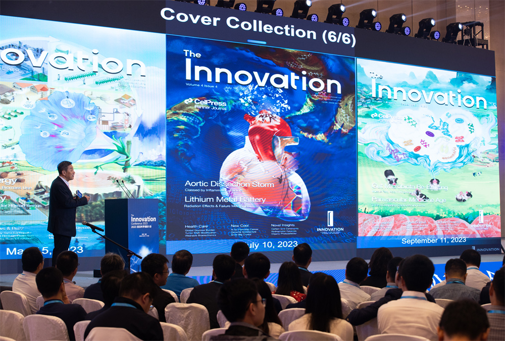 11月1日,在2023前沿科学创新大会上,中国科学院院士、《创新》杂志主编韩布兴在报告杂志创刊进程。