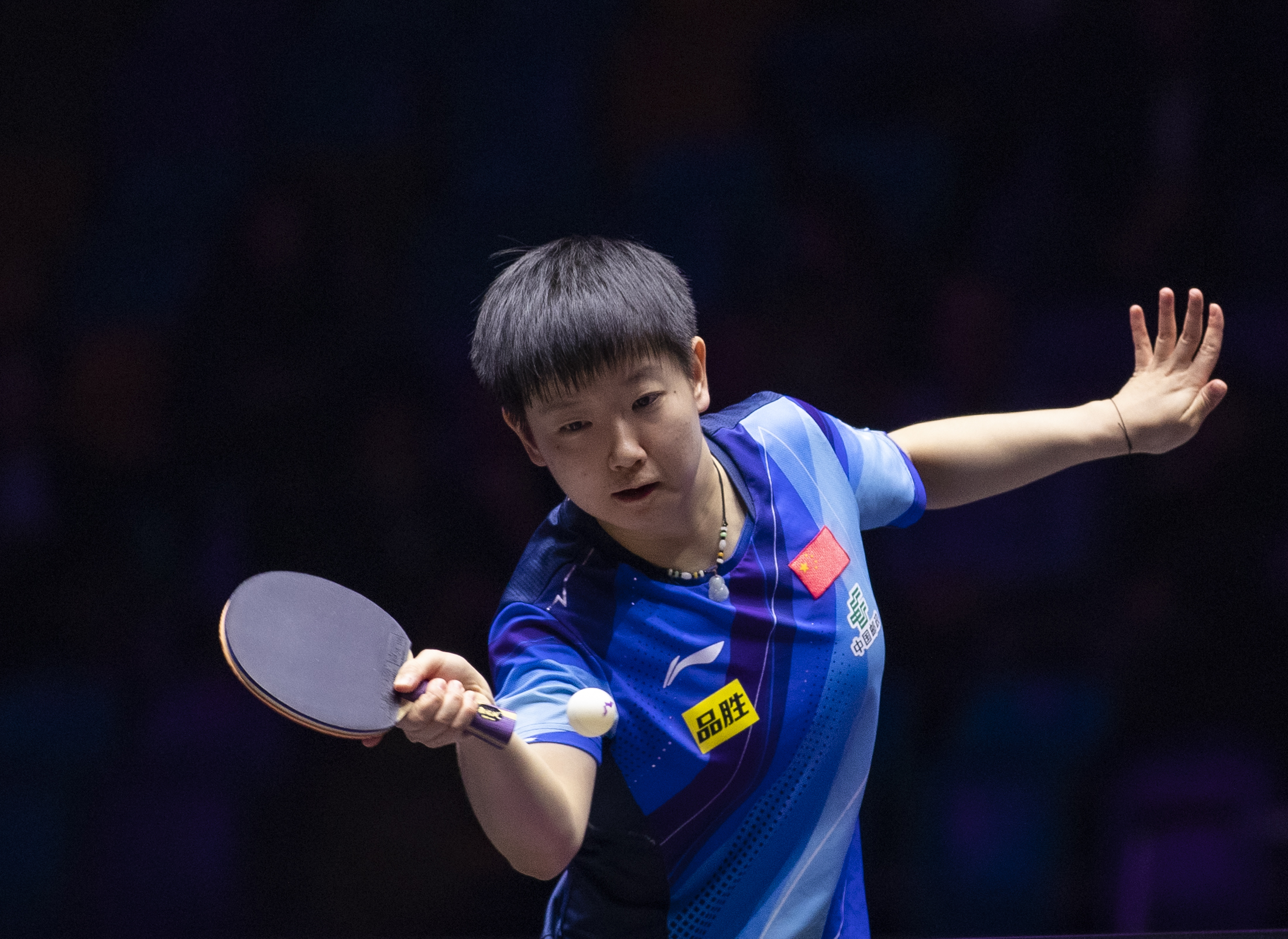 11月1日,孙颖莎在比赛中回球。