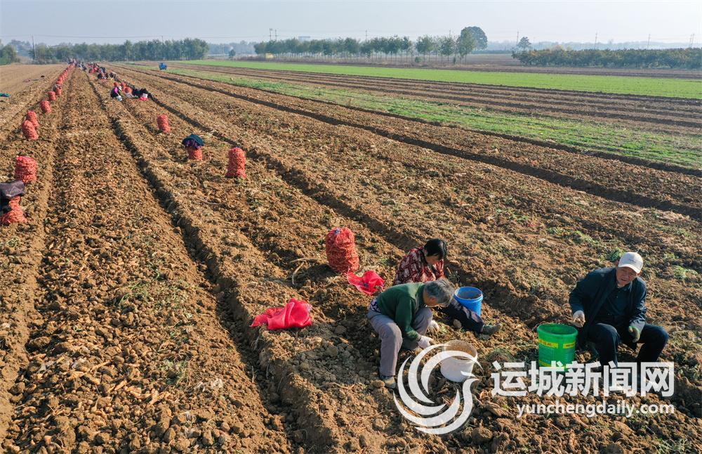 11月1日,村民在夏县禹王镇一家庭农场采收地黄。