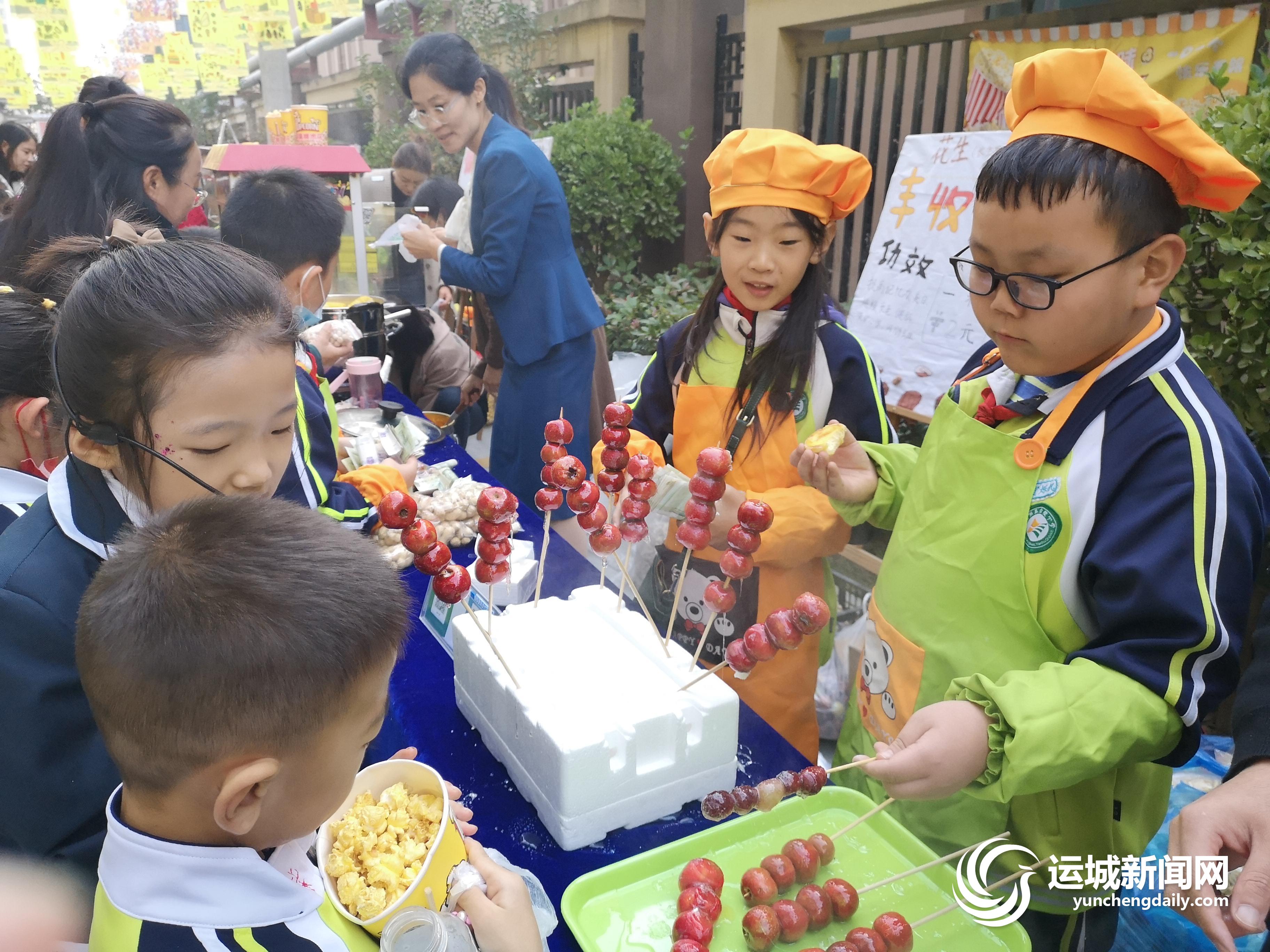 在热闹的“后稷美食街”,只见小朋友们头戴厨师帽,操作娴熟,吆喝起来也非常专业。糖葫芦、爆米花、小蛋糕、冰糖雪梨、炸酱面……各种美食应有尽有,让人目不暇接。据了解,这些美食都是孩子们在家长和老师的帮助下,亲手制作完成的。