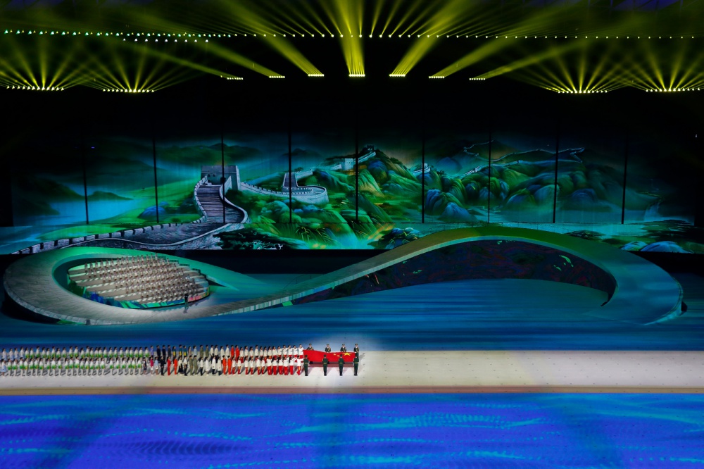 11月5日,第一届全国学生(青年)运动会开幕式在广西体育中心体育场举行。
