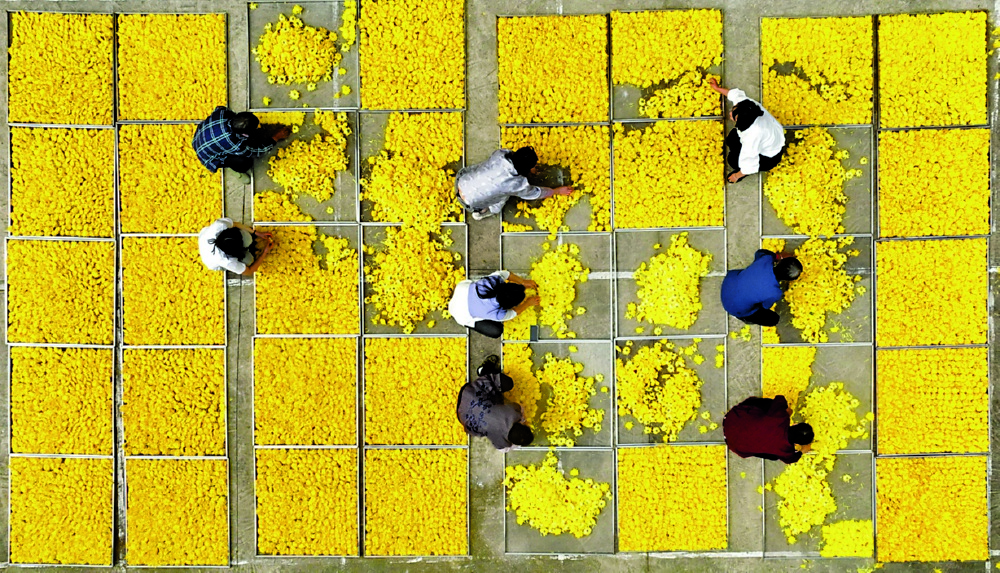 近日,湖南省衡阳市南岳区寿岳乡岳林村皇菊种植基地种植的高山皇菊进入收获期,当地村民抢抓晴好天气采摘、加工。近年来,岳林村依托当地高山林地,大力发展观赏性强、经济价值高的高山皇菊种植,推动当地农旅融合发展,带动农民增收。 新华社发(曹正平 摄)