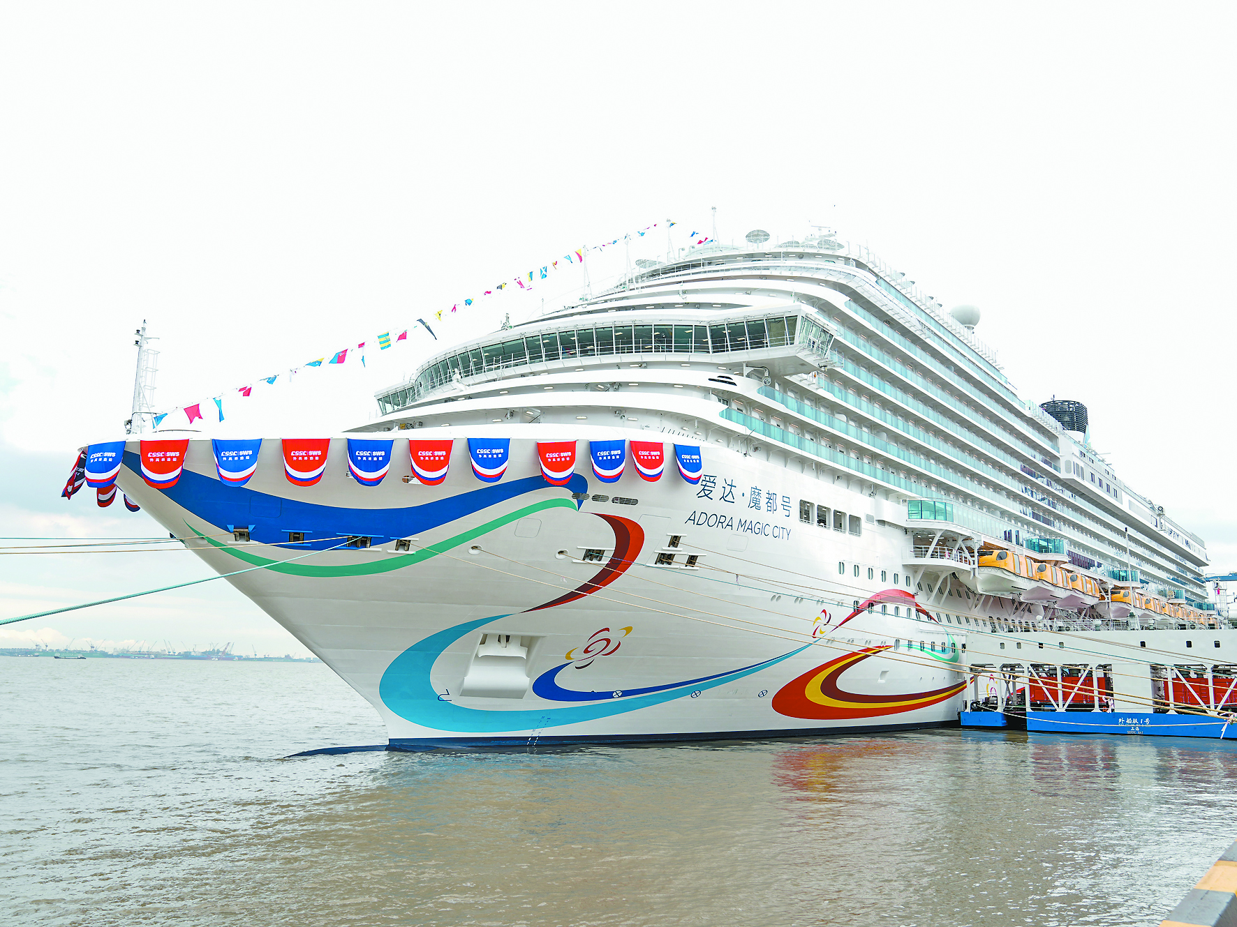 当日,我国国产首艘大型邮轮“爱达·魔都号”正式命名交付。中国船舶集团有限公司旗下上海外高桥造船有限公司与中船邮轮科技发展有限公司及其所属爱达邮轮有限公司正式签署相关交船文件,运营准备工作全面启动,“爱达·魔都号”将于2024年1月1日开启商业首航。“爱达·魔都号”总吨位13.55万吨,长323.6米,宽37.2米,最大高度72.2米;全船搭载107个系统、5.5万个设备,包含2500万个零部件,完工敷设4750公里电缆;船上有客房2125间,可容纳乘客5246人,配置高达16层、面积4万平方米的生活娱乐公共区域。