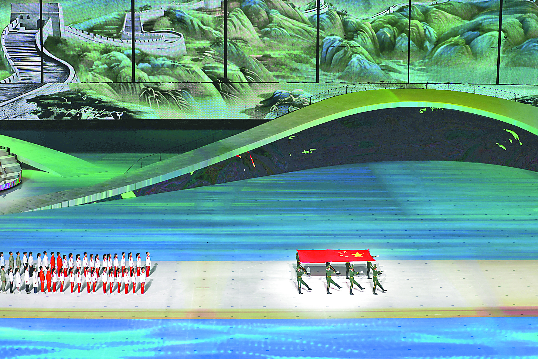 随后,主题为“在青春的赛道上”的文体展演拉开帷幕。文体展演包括《青春的山河》《青春的接力》《青春的奔跑》三个篇章和尾声《青春万岁》,将运动项目、体教元素、文艺元素与广西壮美山水、多彩民族、红色文化、开放发展等元素有机结合。尾声把绿色低碳的点火仪式与表演融合,并推出原创主题歌《以青春的名义》。