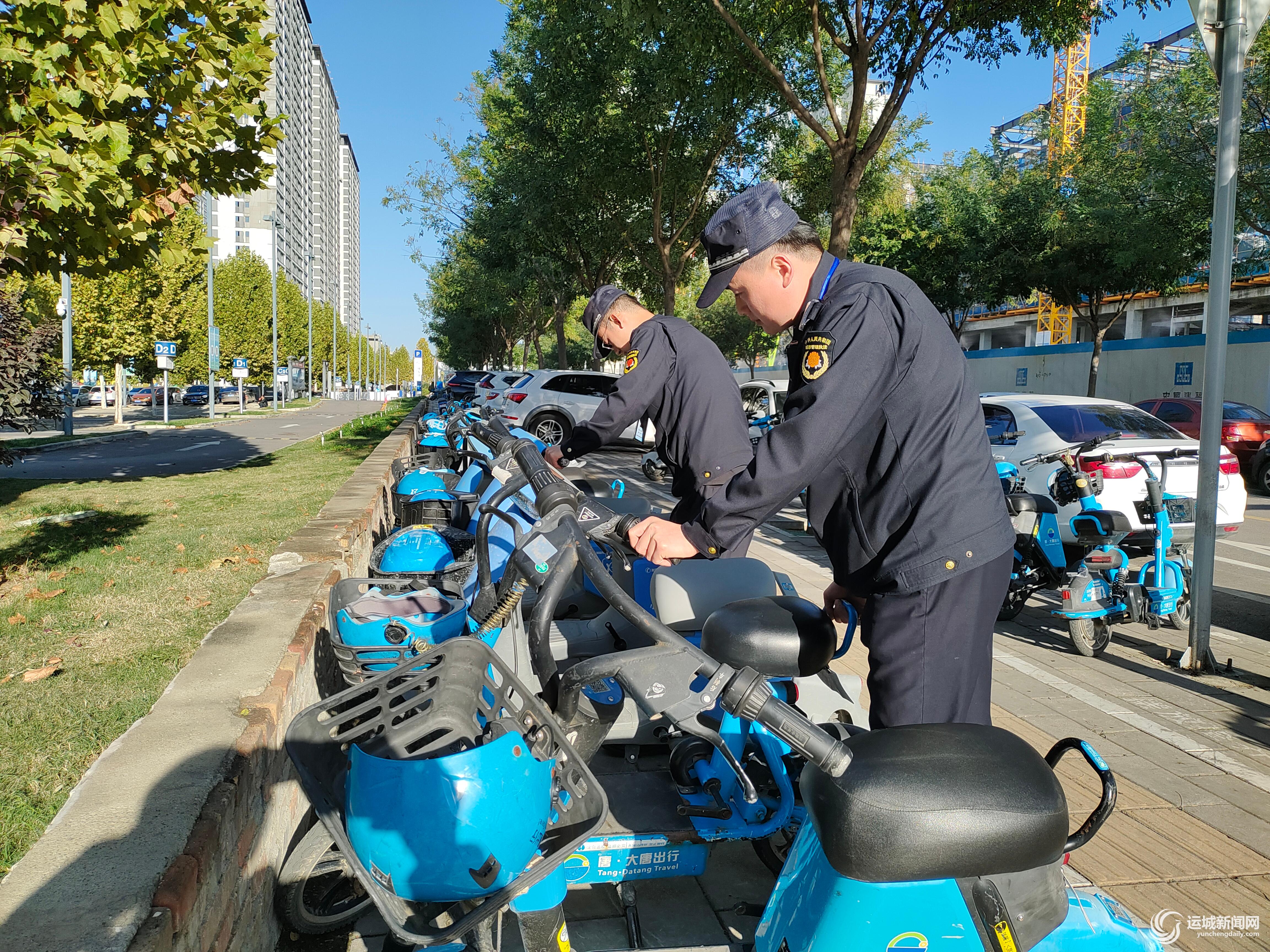 共享文明,畅享出行。共享电动车“小蓝”的出现,不仅丰富了城市绿色公共交通,而且让市民出行更加便利。今年以来,市城市管理局立足人民对美好生活的向往,不断加强对“小蓝”的精细化管理,督促“小彬出行”和“唐·大唐出行”两家企业认真落实主体责任,持续更新车辆,通过技术手段,优化车辆文明使用及停放秩序,全面提升市民出行的安全感和体验感。同时,在加强文明骑行宣传的基础上,通过执法人员现场规范引导,增强市民文明用车意识,打造整洁有序、文明和谐的高品质城市出行环境。