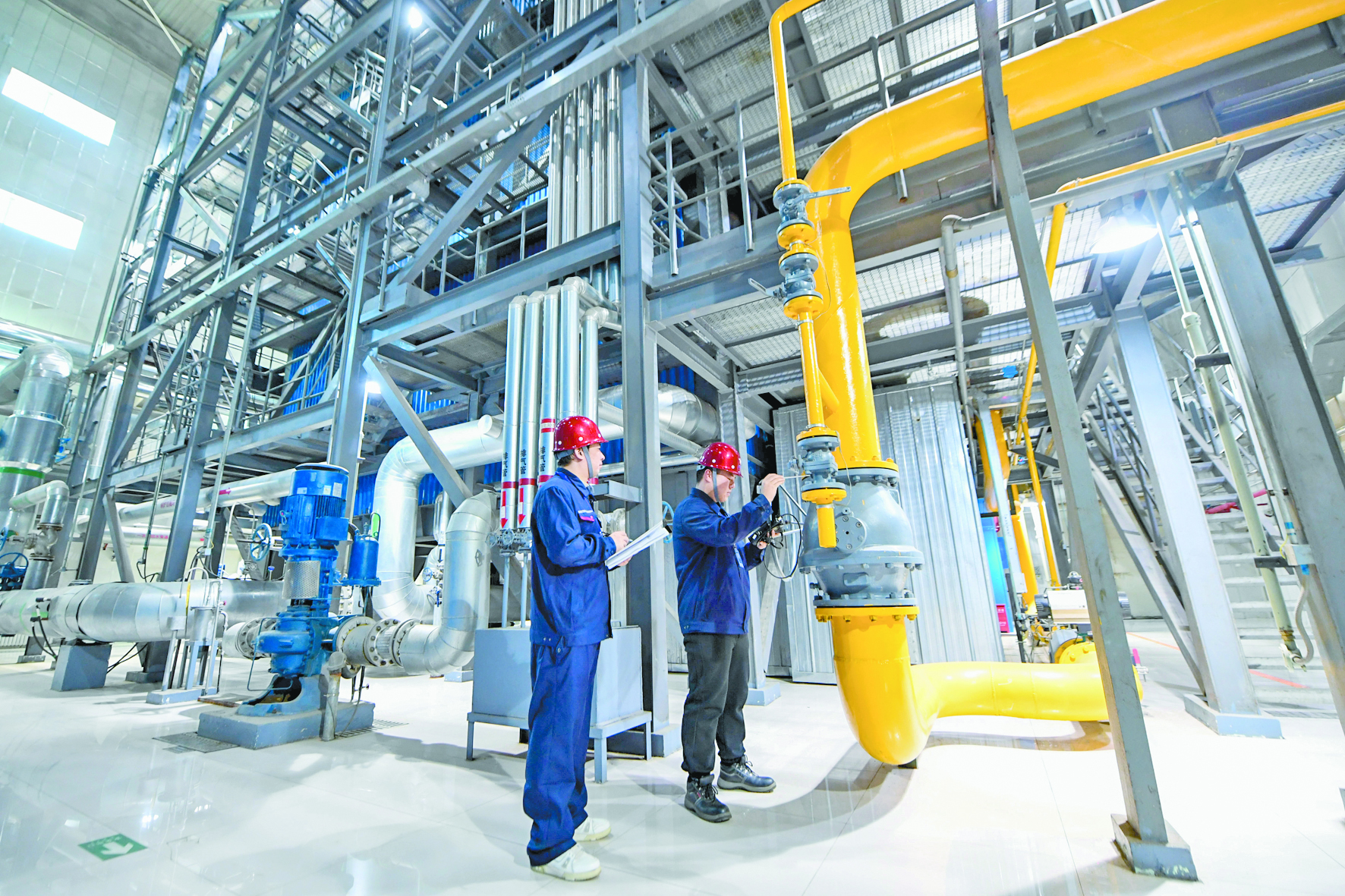 11月6日,北京市热力集团有限责任公司海淀分公司的技术人员在巡查燃气供热设备。