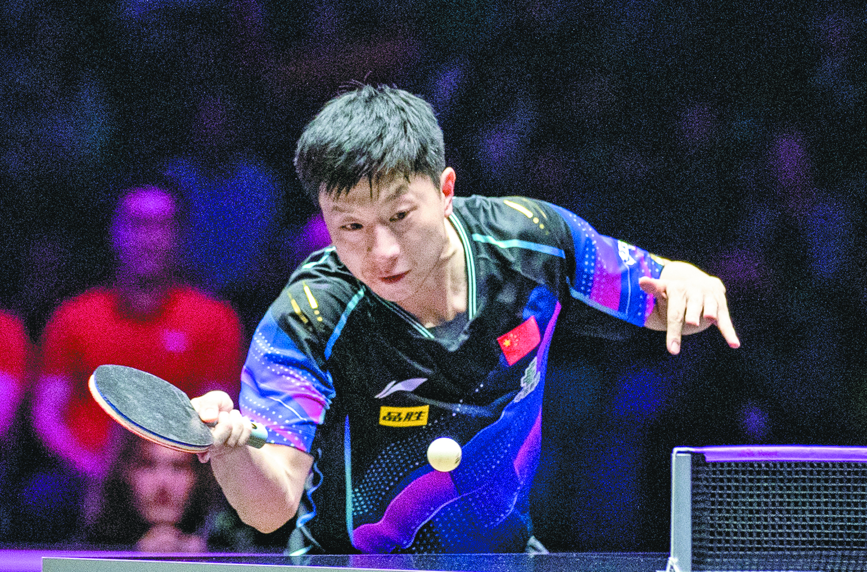 ▲11月5日,马龙在比赛中回球。