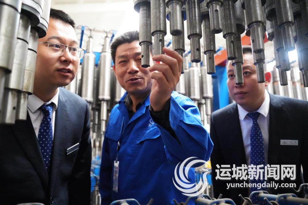运城农商银行工作人员在天海泵业调研企业生产情况。 薛武魁 摄