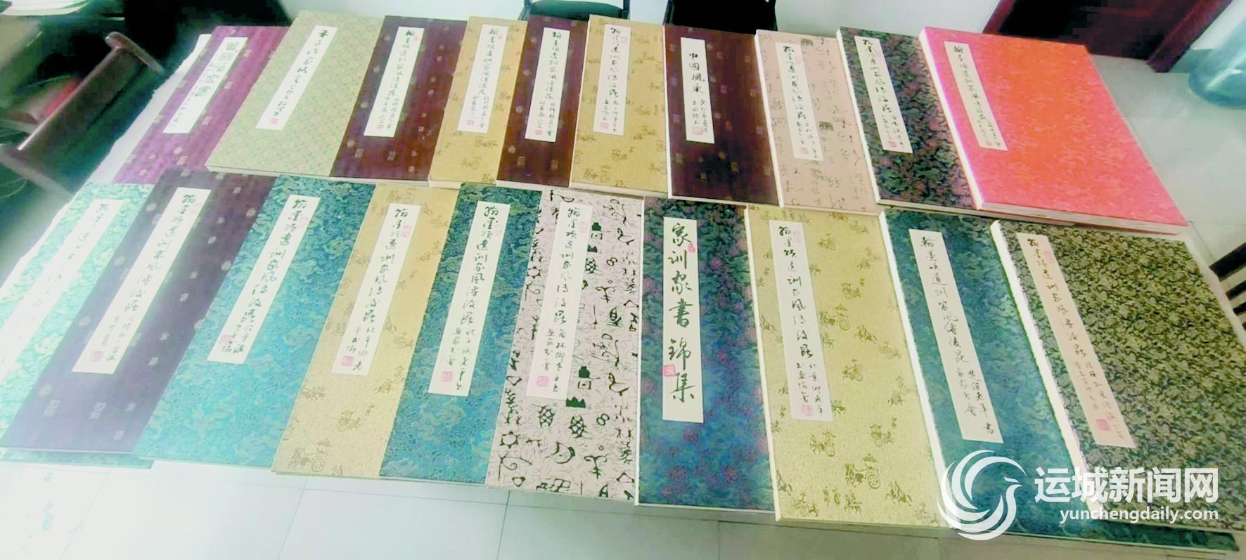 功夫不负有心人。临猗县老年书画家协会在各级领导的关怀下、兄弟学会的支持下、全体会员的努力下,自今年4月份开始至10月底,历时6个多月创作,23本以“家风家训”为内容的册页已完美成册。每本册页装饰精美、端装大气,由该协会主席杨峰题写的“翰墨颂遗训、家风传后昆”封面,也成为册页的一大亮点。