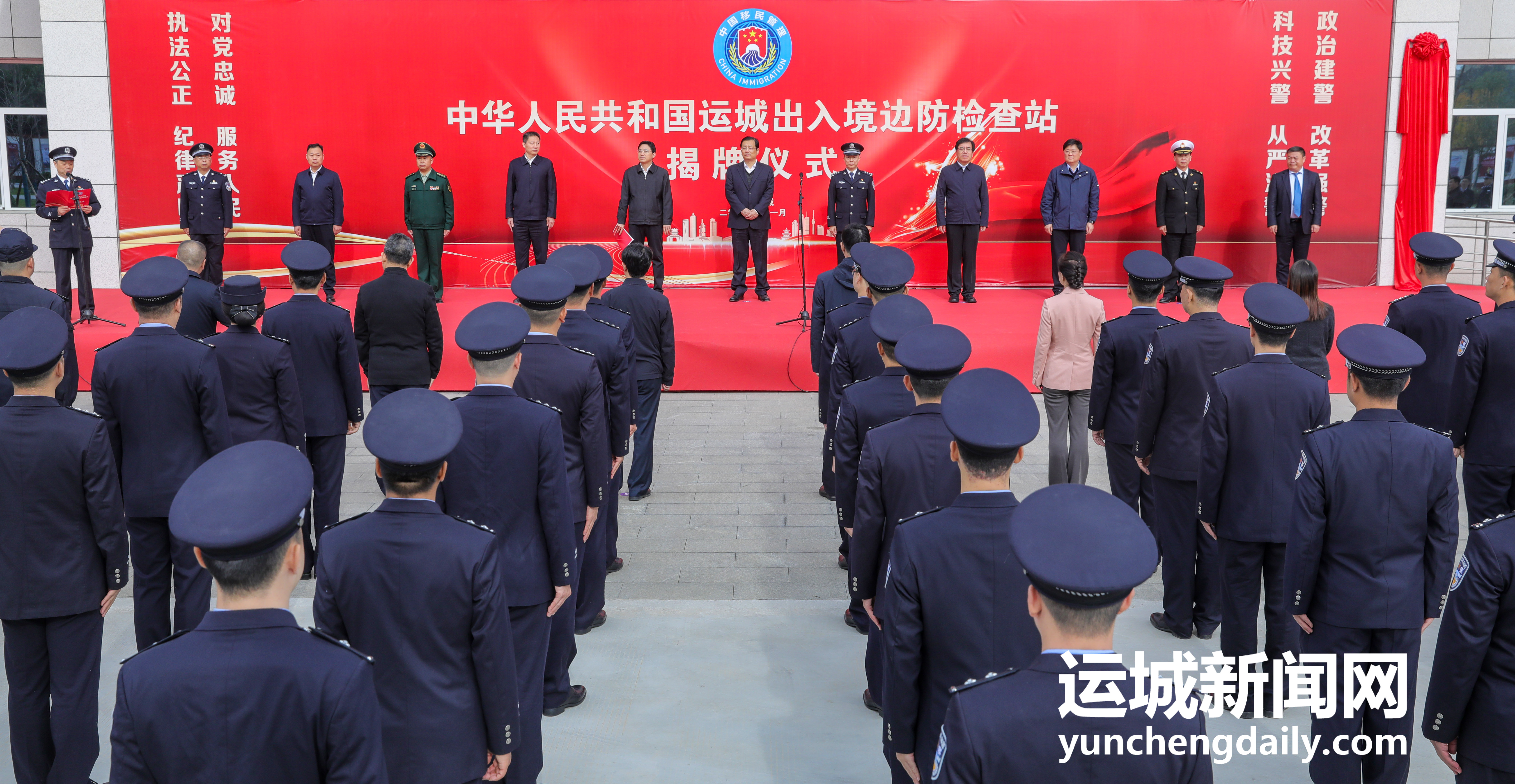 市直相关部门、运城经济技术开发区有关负责同志,口岸联检单位、驻运武警部队代表和运城边检站全体民警职工等参加。