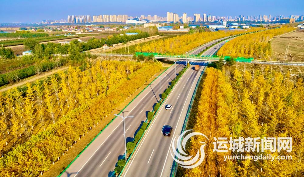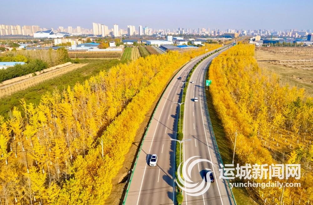 立冬时节,运城西高速口沿线道路两侧银杏树进入最佳观赏期,美不胜收。