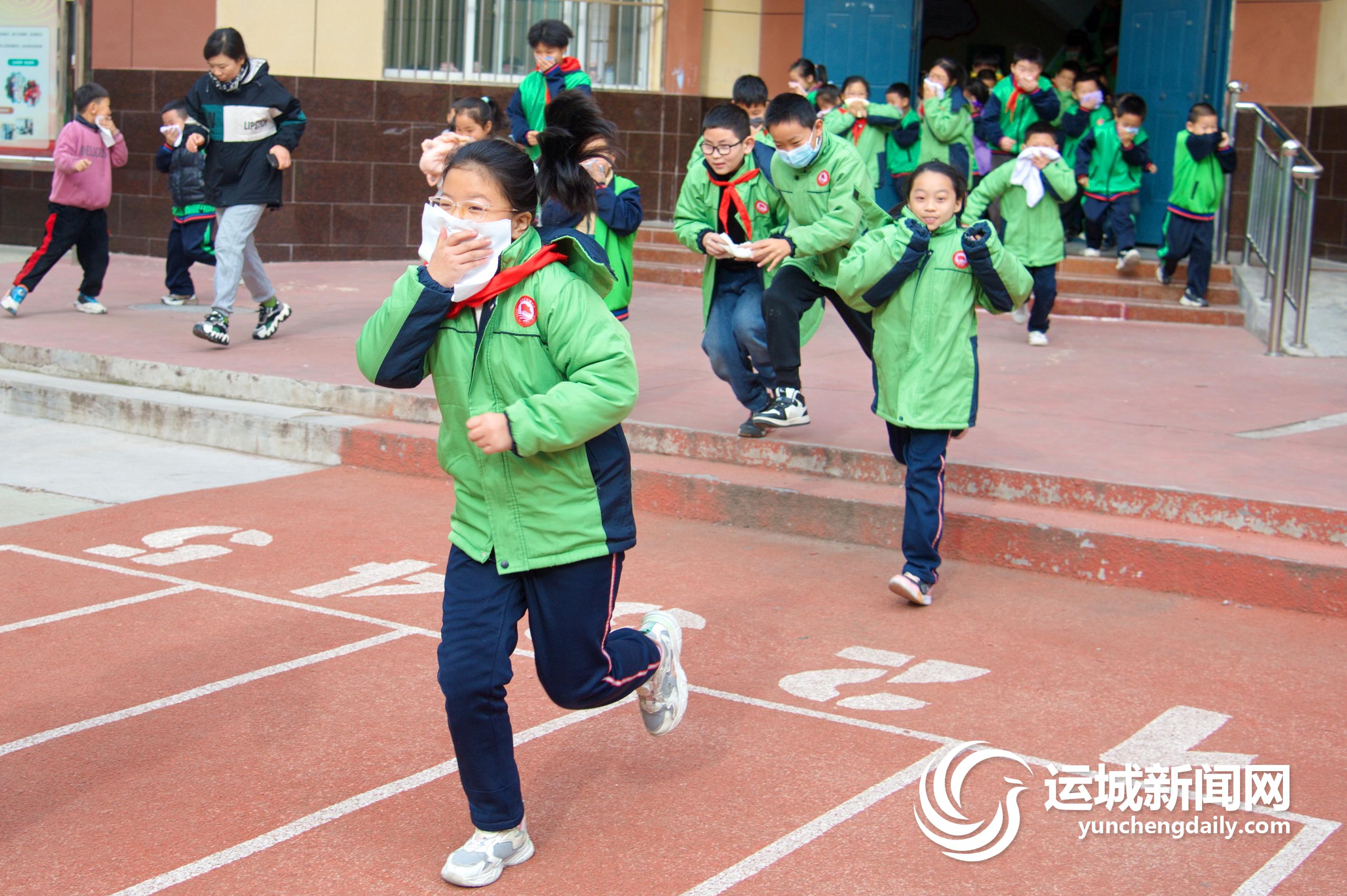 上午10时,广播里模拟火情的警报声响起,孩子们纷纷用毛巾捂住口鼻,快速有序从教学楼撤离至操场指定位置。“报告,一(2)班应到40人,实到40人。”“报告,四(3)班应到48人,实到48人。”……学生们安全集合后,各班代表向总指挥一一汇报,整个撤离过程有条不紊,用时不超过10分钟。