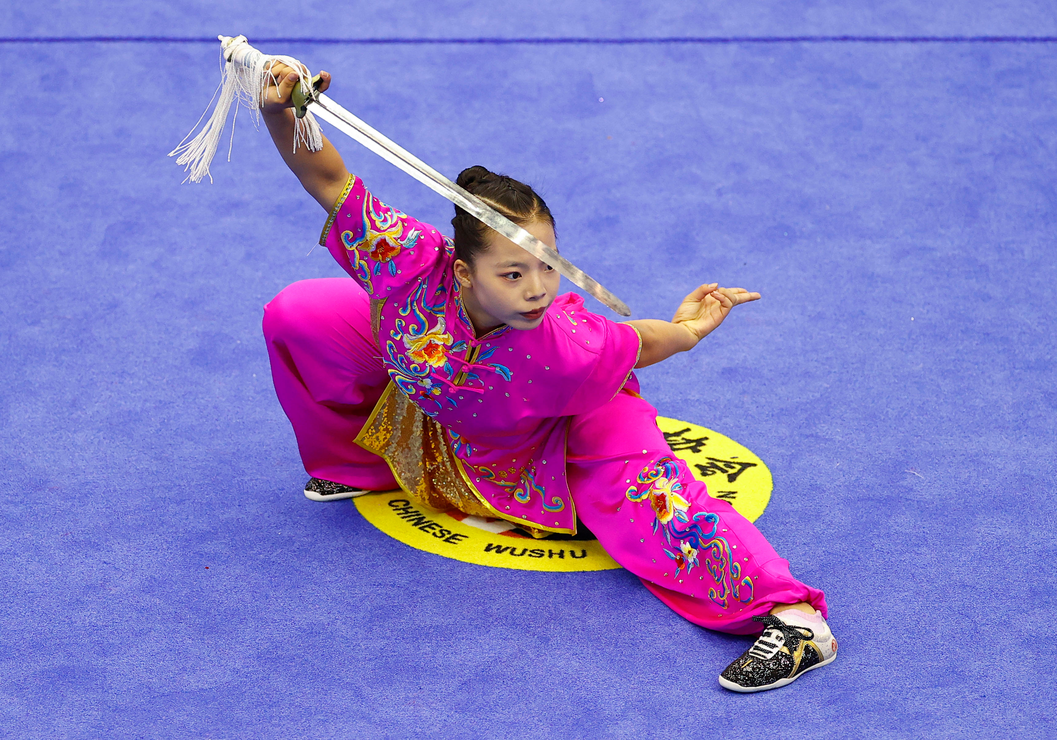 当日,第一届全国学生(青年)运动会中学组女子自选剑术决赛在广西壮族自治区体育馆举行。