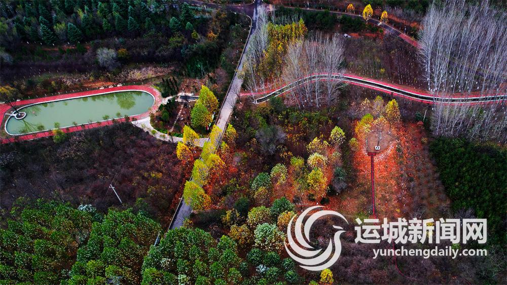 11月12日,夜幕下的垣曲县城郊森林公园,初冬景色五彩斑斓。