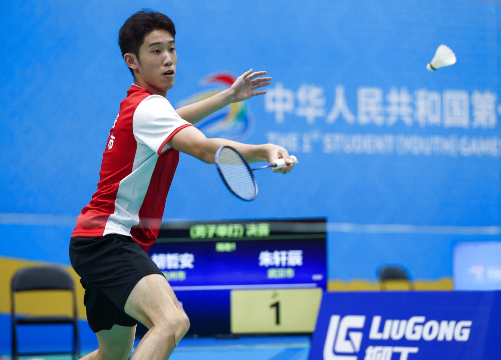 当日,在广西南宁举行的第一届全国学生(青年)运动会公开组羽毛球男子单打决赛中,杭州选手胡哲安以2比1战胜武汉选手朱轩辰,夺得冠军。
