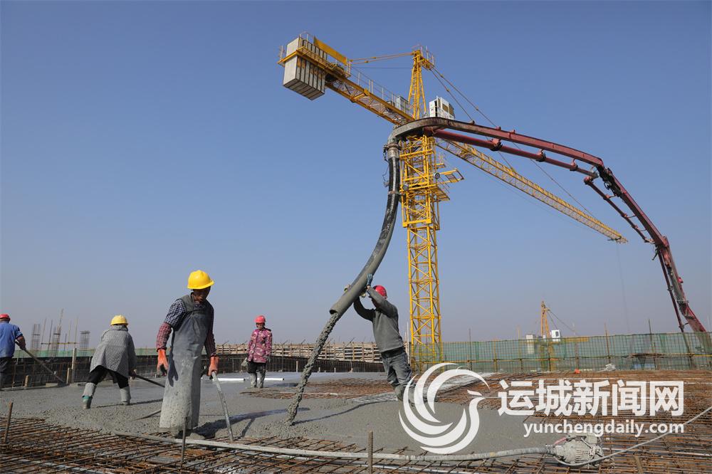 临猗农产品加工园标准化厂房项目现场,工人们在加紧建设。