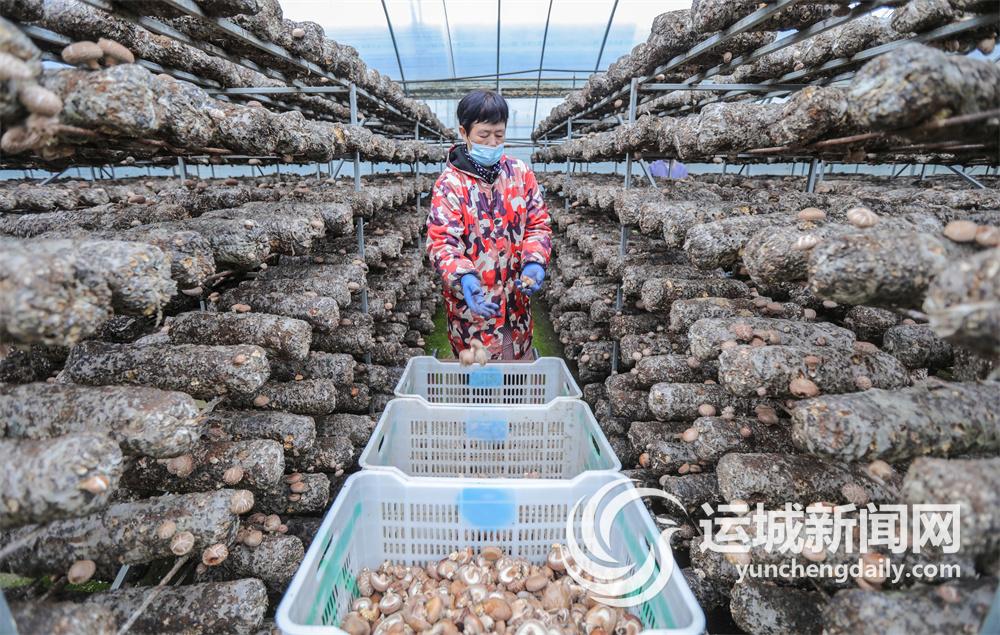 万荣县南张乡薛里村香菇产业园内,农户在忙着收获香菇。 记者 金玉敏 摄