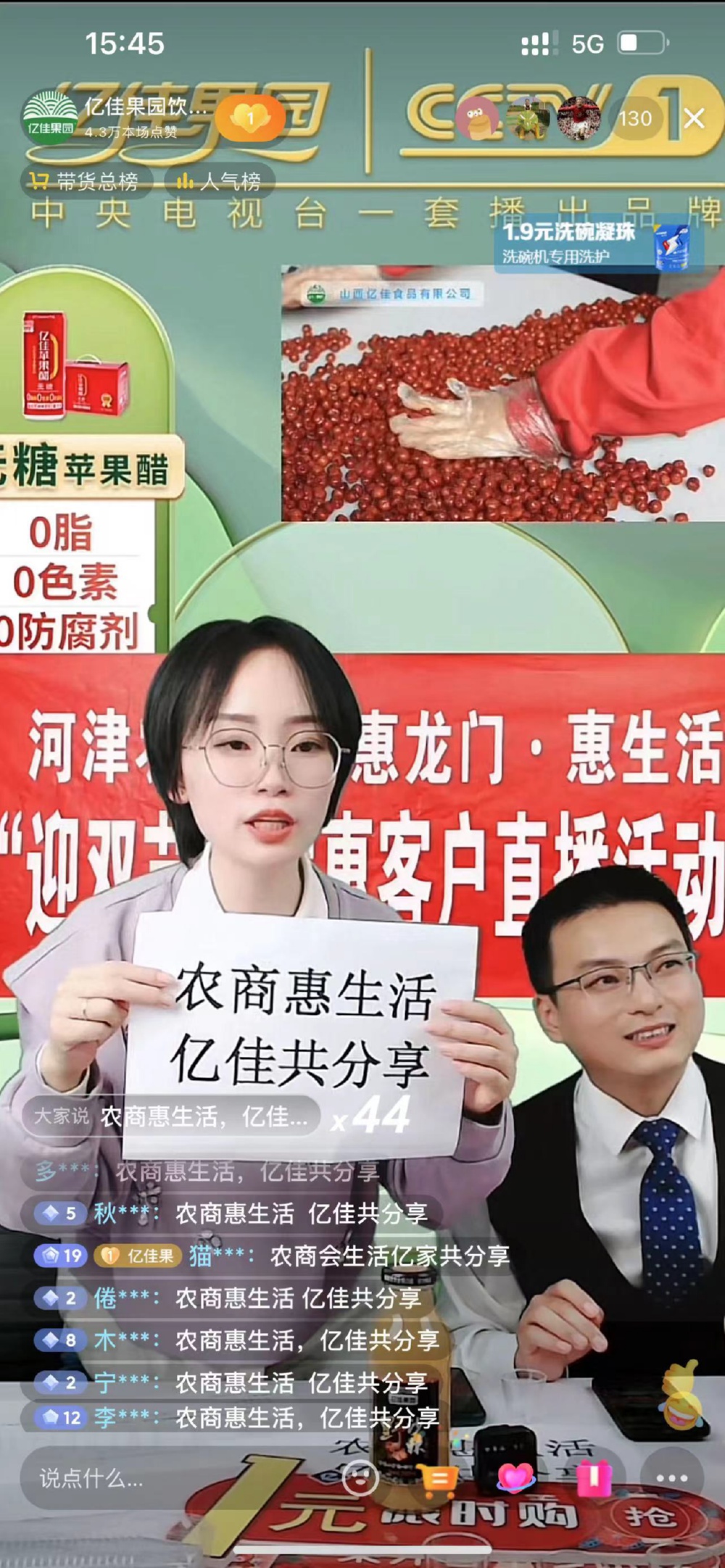 为办好此次直播带货,河津农商银行电子渠道部和小微贷款营销中心主动对接企业,甄选优质果汁饮料,并进行资金补贴,让广大抖友享受优惠的价格。直播期间,两名主播热情高涨,以公司宣传视频实时展播、试吃、试品等方式,让抖友们感受该公司产品的特色和魅力。