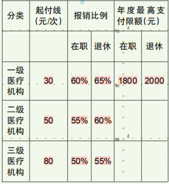 ◆职工医保普通门诊统筹起付标准、支付比例和年度最高支付限额分别是多少?