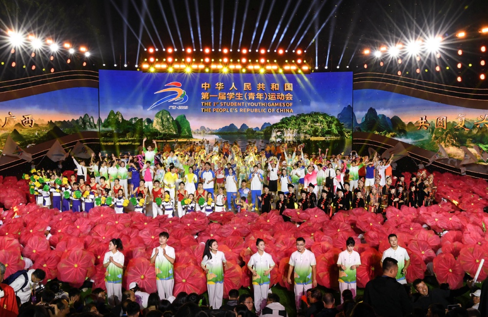 首届全国学生(青年)运动会闭幕式15日晚在邕江之畔的南宁青秀山铜鼓广场举行。临别回首,八桂大地见证了一场年轻的盛会、一个青春绽放的舞台、一次体教融合的探索。