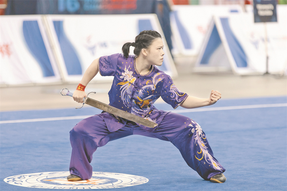 11月17日,中国选手吴佳凝在女子南刀比赛中。