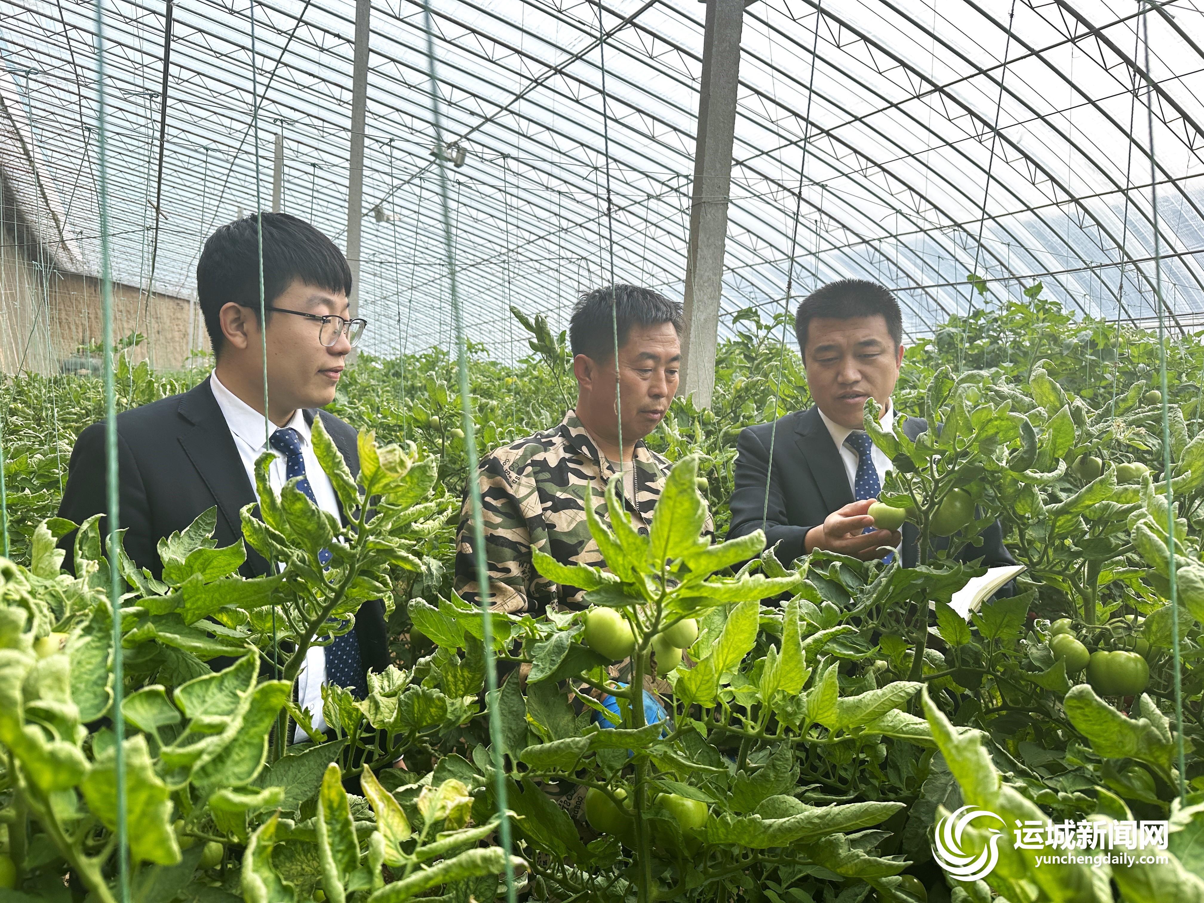 新绛农商银行工作人员深入建风合作社了解设施蔬菜产销情况。 刘维鹏 摄