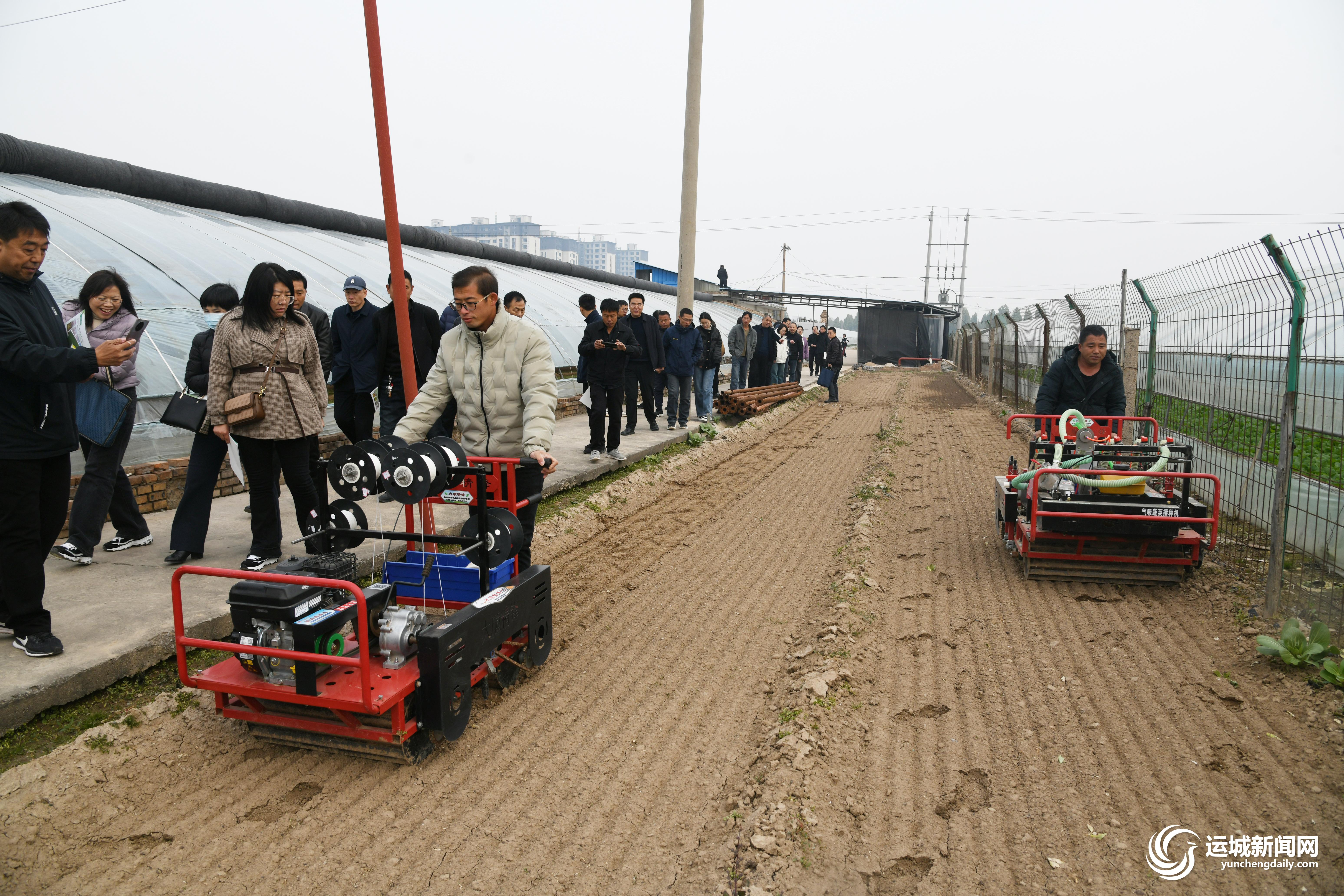 近日,闻喜县口福蔬菜种植专业合作社,蔬菜专家和蔬菜种植户在观看蔬菜生产机械化演示。今年以来,该合作社积极实施省级设施蔬菜标准化生产示范园创建项目,大力推广蔬菜机械化精播等技术,推动绿叶类蔬菜高质量发展。特约摄影 温徐旺 摄