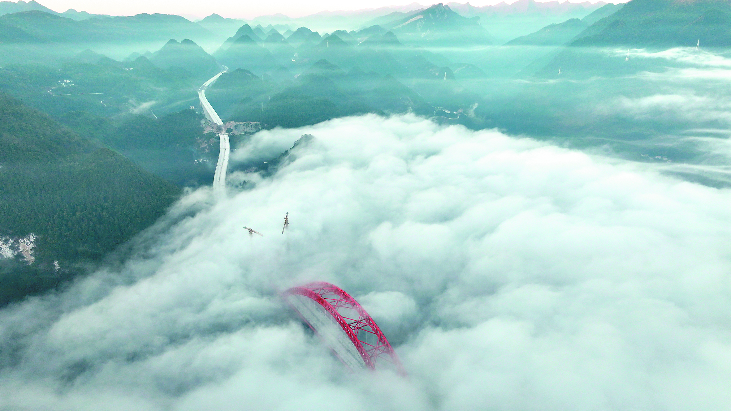 溇水河特大桥位于湖北省恩施土家族苗族自治州鹤峰县境内,是宜来(宜都市至来凤县)高速公路鹤峰东段的控制性工程,大桥全长328米,横跨300多米深的峡谷,目前该桥进入桥面施工阶段。