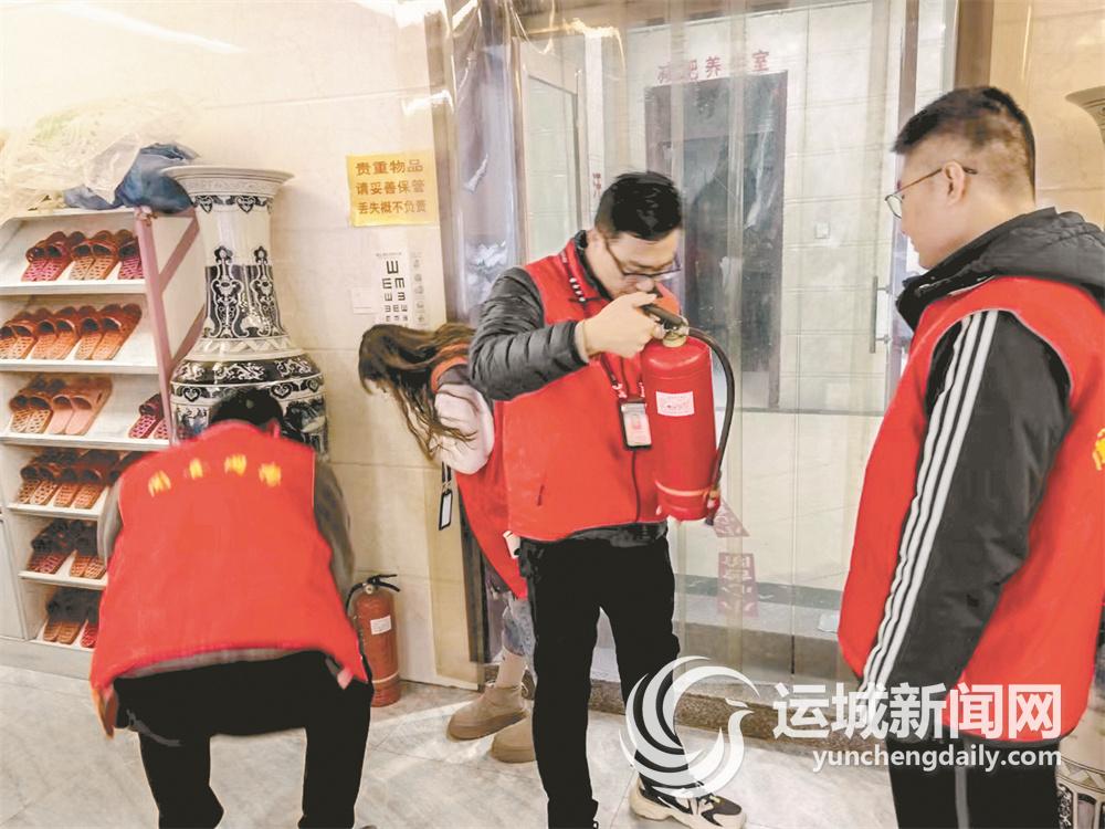 运城晚报讯 11月18日,闻喜县社区服务中心苗圃社区工作人员在辖区开展防范火灾安全检查巡查(上图)。