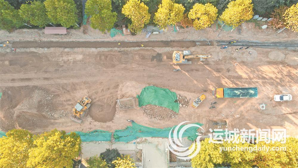11月19日,垣曲县黄河路提升改造工程正加紧施工。