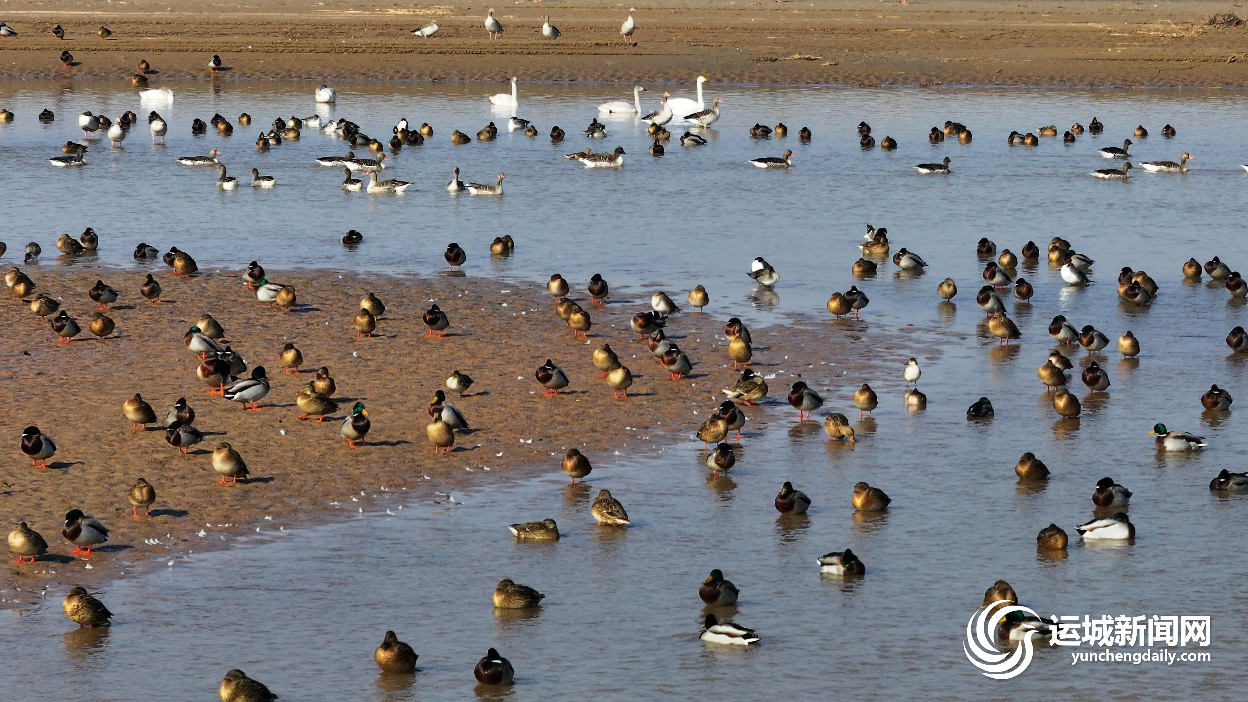 11月26日,数千只候鸟飞抵黄河湿地自然保护区(永济段)越冬。