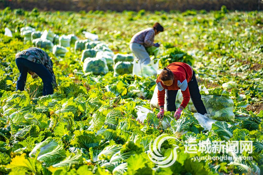 在临猗县水南村白菜种植基地,村民在收获白菜。记者 陈方斌 摄