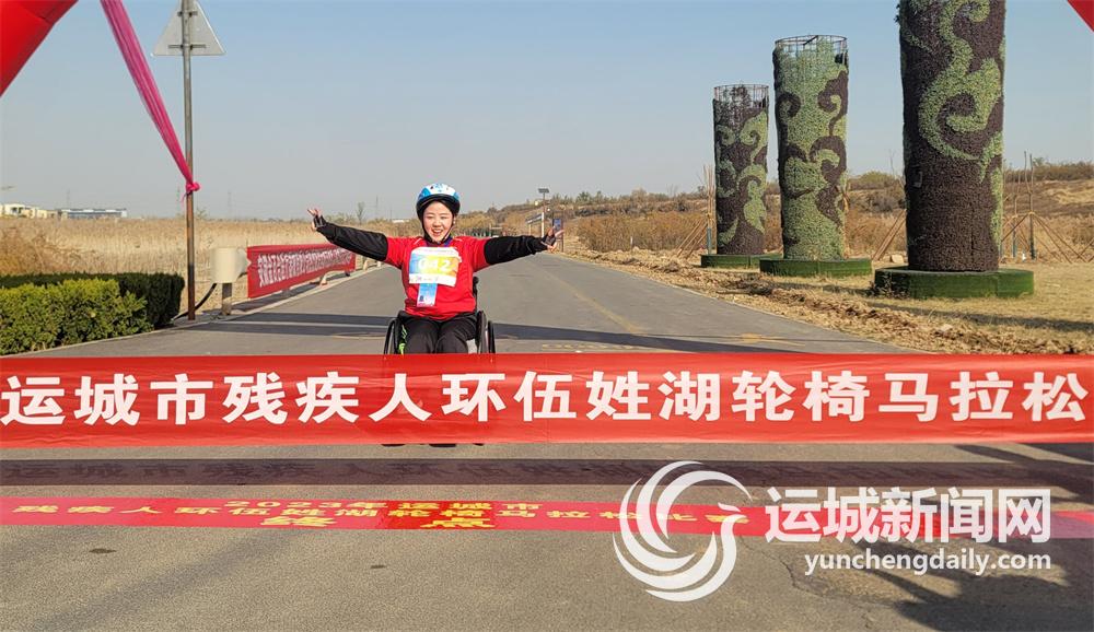比赛中,选手们根据地形及时调整轮椅方向、控制轮椅速度,顽强拼搏、超越自我、积极向上的精神风貌,感染着现场观赛的每一个人,观众不断为他们加油打气。10时52分,盐湖区选手王根生第一个冲线完赛,成为男子组第一名;10时58分,稷山县选手原红沙冲线,成为女子组第一名。