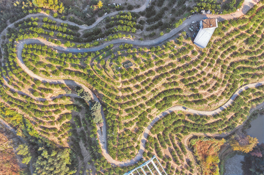 空中俯瞰浙江省丽水市庆元县黄坛村的甜桔柚基地(11月28日摄,无人机照片)。