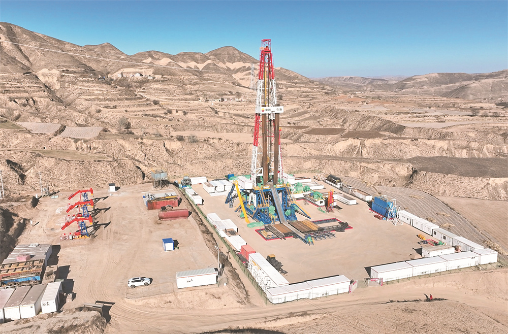 这是11月30日在甘肃省庆阳市环县拍摄的洪德油田钻井施工现场(无人机照片)。 新华社发(长庆油田宣传部供图)