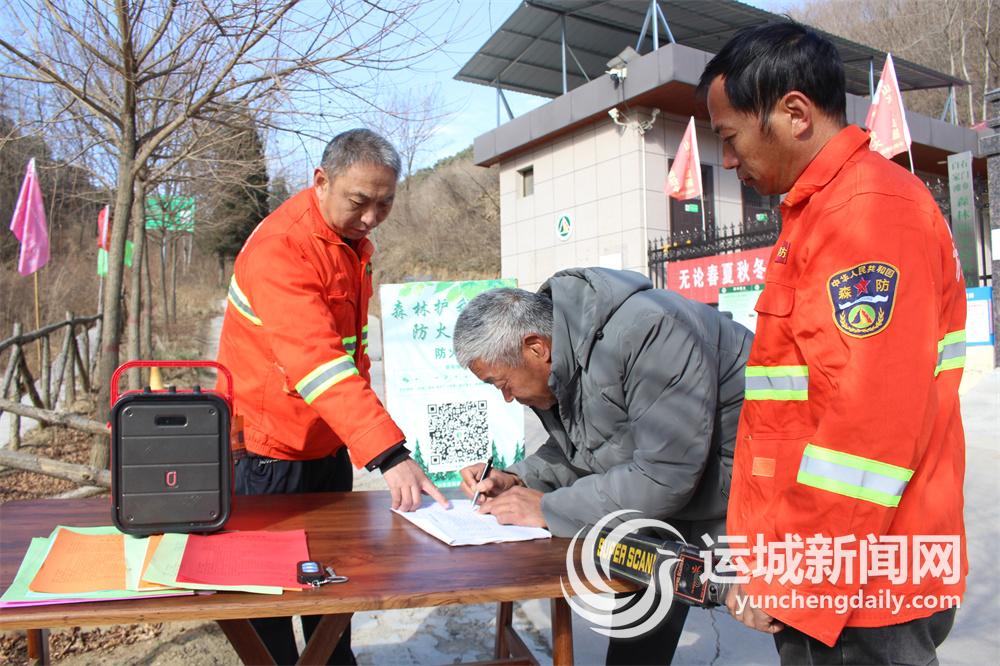 11月30日,闻喜县石门乡森林管护员在护林防火检查卡点对往来人员及车辆进行检查登记。