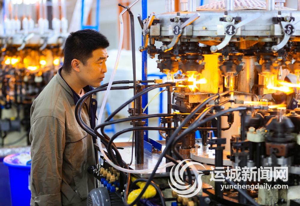 在宏光医用玻璃股份有限公司生产车间内,工人在生产管制瓶产品。