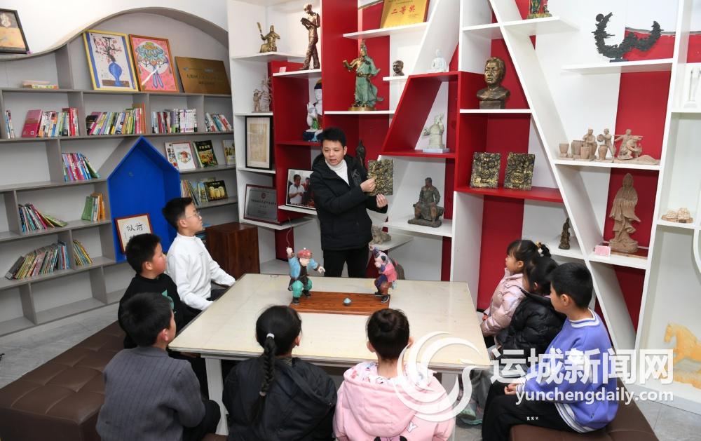 12月5日,“稷山彩塑”省级非遗传承人吴高志在向孩子们介绍彩塑作品。