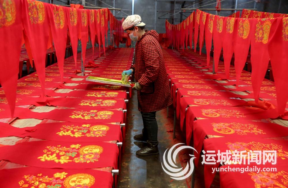 12月1日,工人在稷山县稷峰镇杨赵村灯笼产业园加紧制作各种类型红灯笼。裁剪、印制、缝灯面、穿钢丝、套灯架、拉金条、晾晒灯笼等工艺流程有序进行,一派繁忙景象。