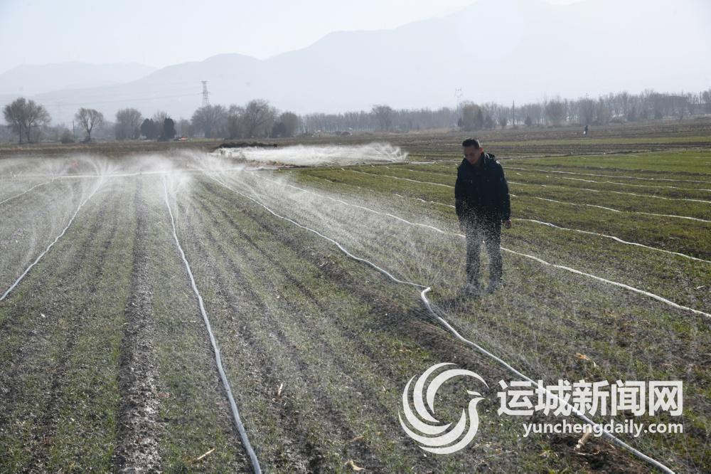 12月8日,闻喜县河底镇南王村村民在麦田进行冬浇。当前是小麦安全越冬的关键时节,河底镇党委政府积极引导群众抓住有利时机,为冬小麦浇封冻水、追施有机肥,争取明年夏粮获得好收成。 特约摄影 温徐旺 摄