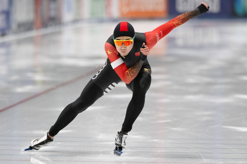 12月9日,中国选手高亭宇在男子500米A组第一次比赛中。新华社发(拉法尔 摄)