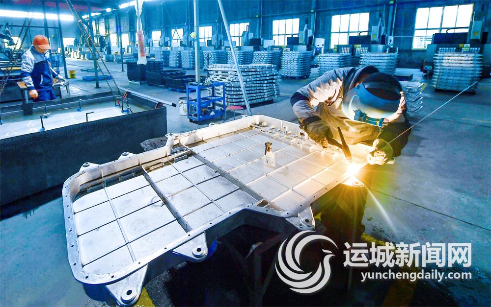 12月7日,在永济市派克新能源科技有限公司生产车间,工人在赶制新能源汽车电池箱。该公司主要生产、销售新能源汽车电池箱,年产量达10万件。