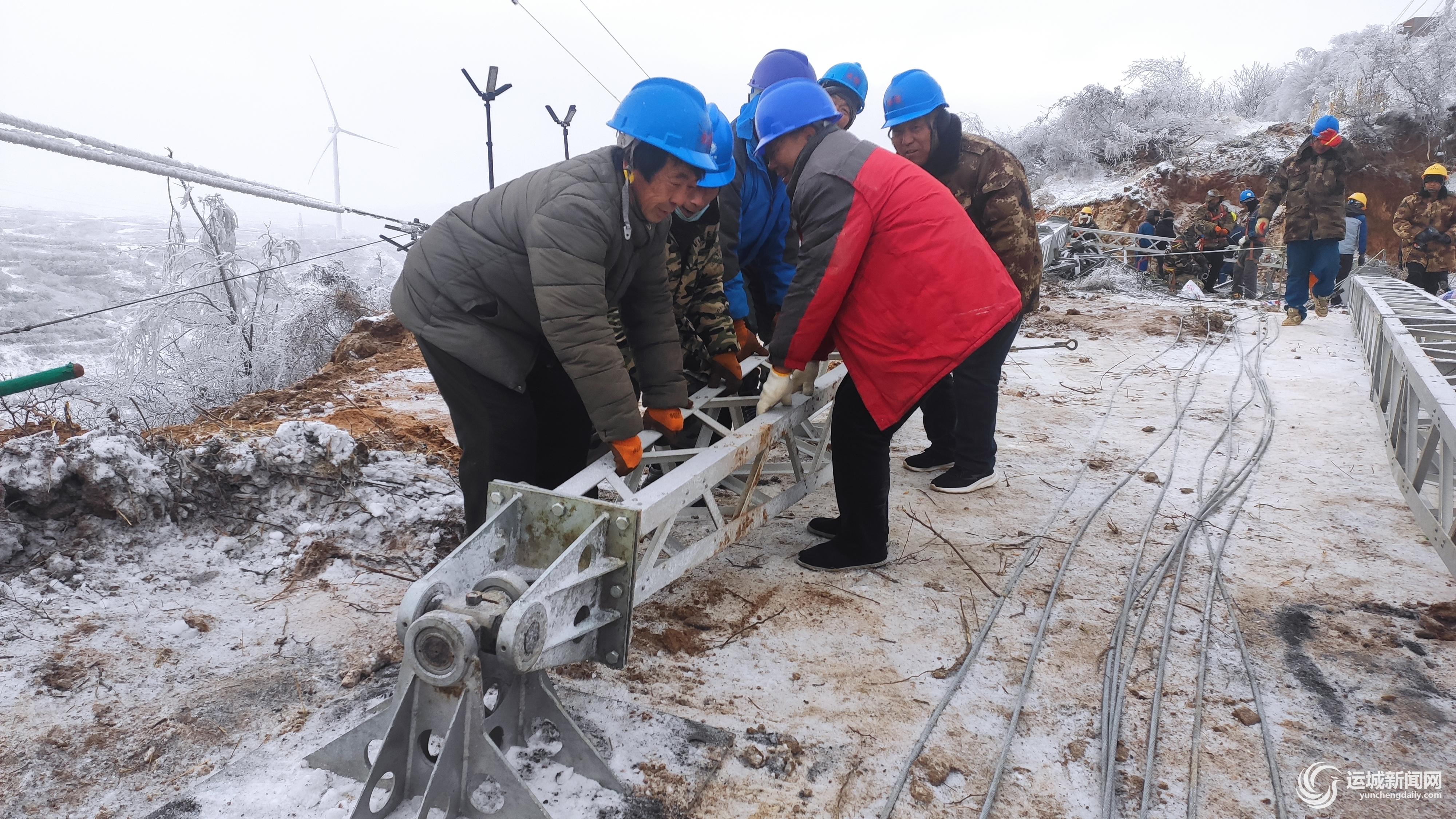 全力开展电力抢修。按照市委、市政府的安排部署,国网运城供电公司于13日晚6时许,组织人员、大型机械第一时间赶赴闻喜县后宫乡茨庙村110千伏金石线开展电力抢修。抢修地位于山区,恰逢近两天风雪交加,电闪雷鸣,路面结冰湿滑,寒风刺骨,给整个抢修工作带来了挑战。对此,国网山西省电力公司特抽调太原、临汾等地电力力量支援运城。经过大家抗严寒、战风雪的合力奋战,截至14日15时30分,110千伏金石线两处基塔吊装完成,后续相关工作正有序进行。