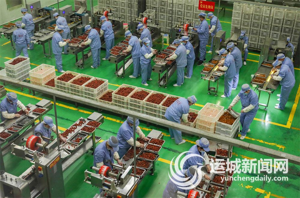 山西康顺达食品股份有限公司工人在分拣、整理果脯。